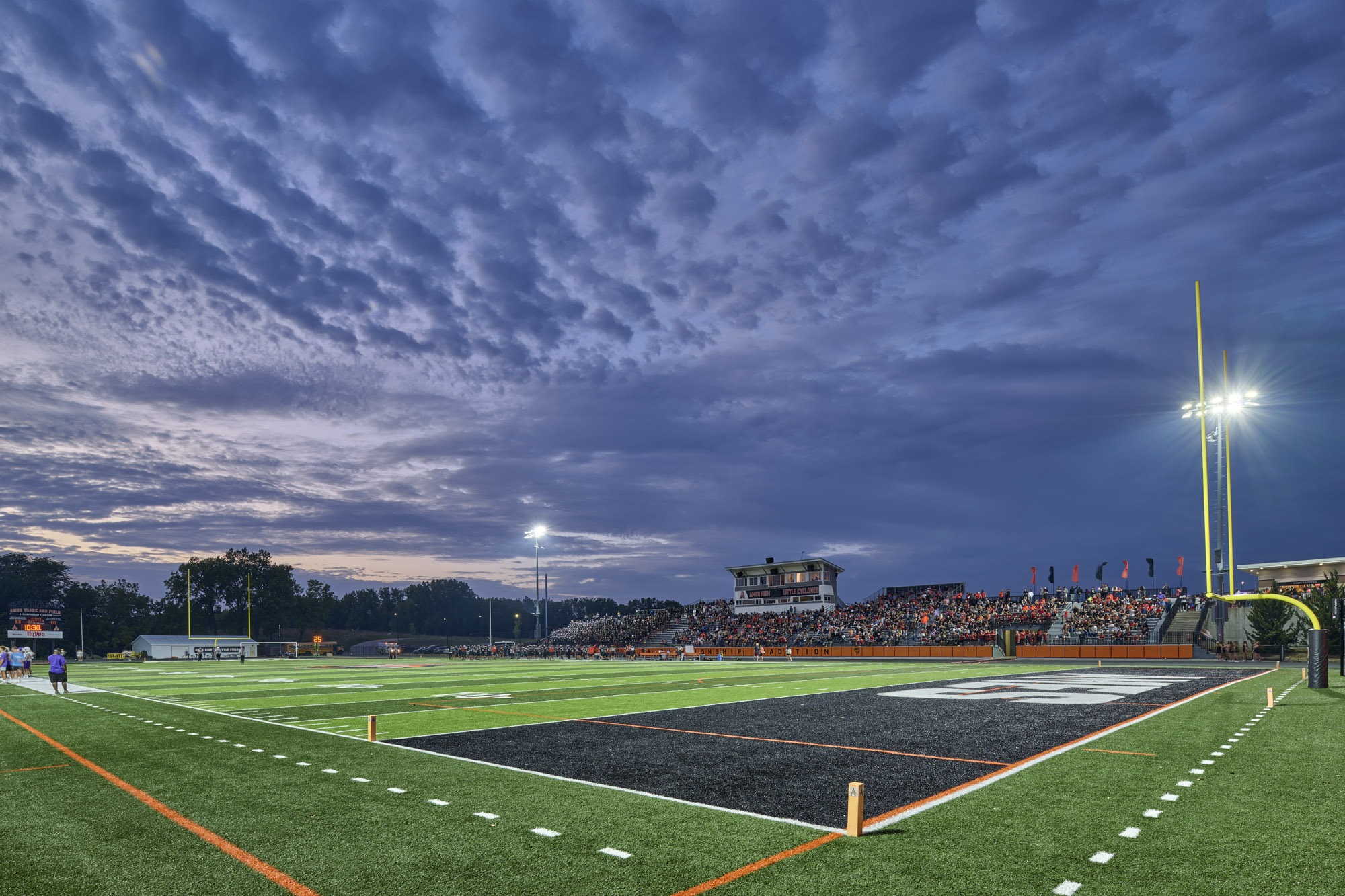 The Ames Community School District implemented a phased plan to revitalize its 1970 high school stadium, preserving the historic infrastructure while enhancing functionality for the future. Our team started with a comprehensive facility assessment, evaluating accessibility and structural conditions, guiding upgrades that included turf and track replacement, new stadium lighting, and the addition of 200 bleacher seats.