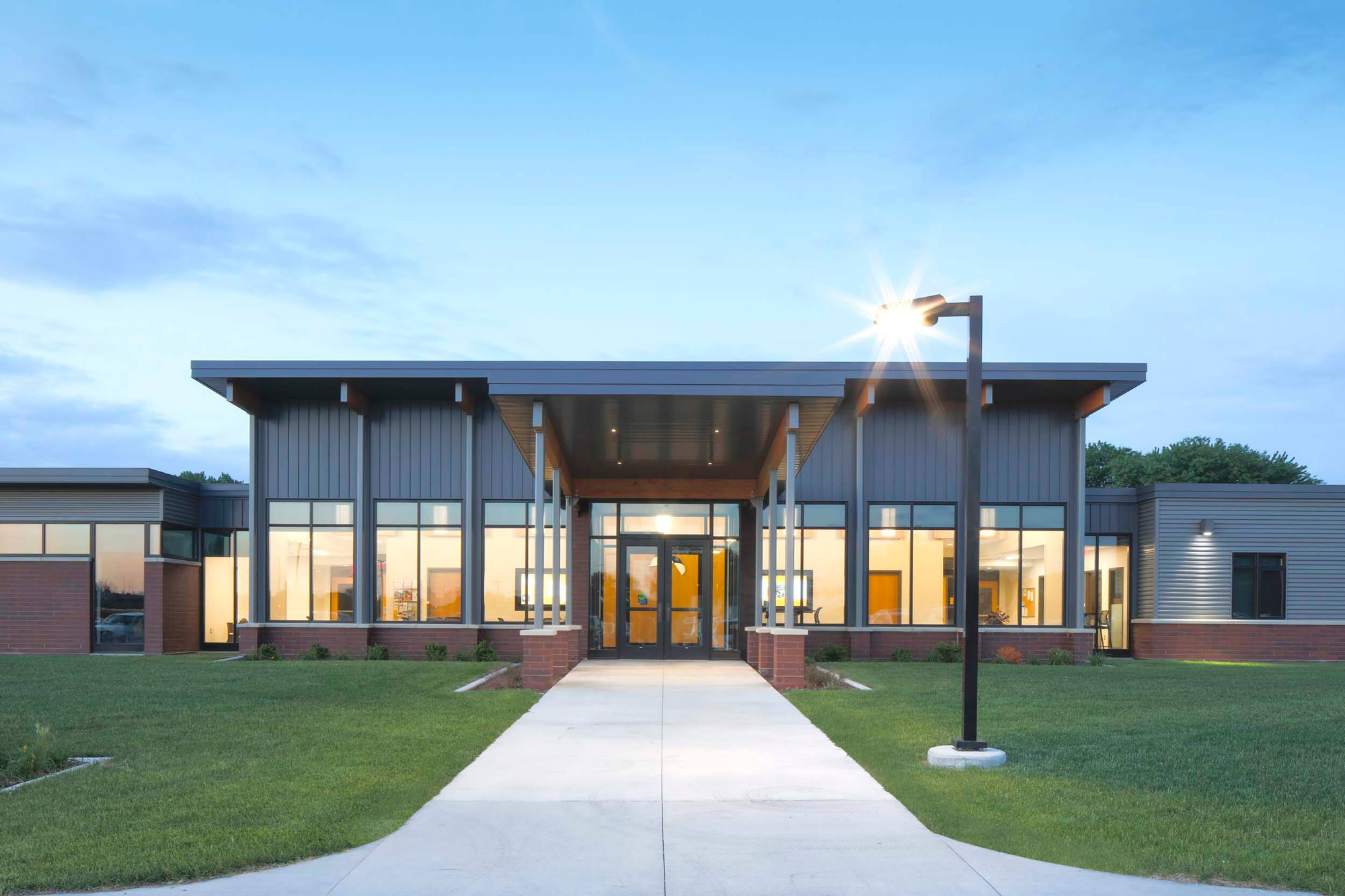 The Ames CSD 24th Street Development is a 26-acre parcel that included a new administration building, baseball and softball complex, tennis courts, a practice cross country course, supporting buildings, infrastructure and amenities.
