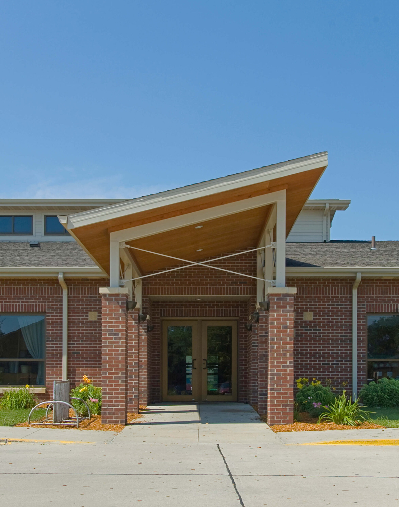 The Boone Family Resource Center was created to benefit those in the Boone, Iowa, area in need of daycare for infant children through adults. The project represents a culmination of extensive written and graphic communication work to secure grants and donations to make the project possible. A safe environment for all daycare recipients was of utmost importance, including access drives and drop-off areas. Common circulation areas allow for visual passive oversight, which also helps ease staffing pressure. The building is designed for the future expansion of facilities and programs.