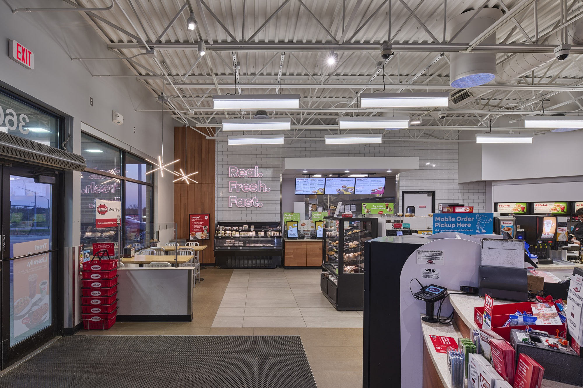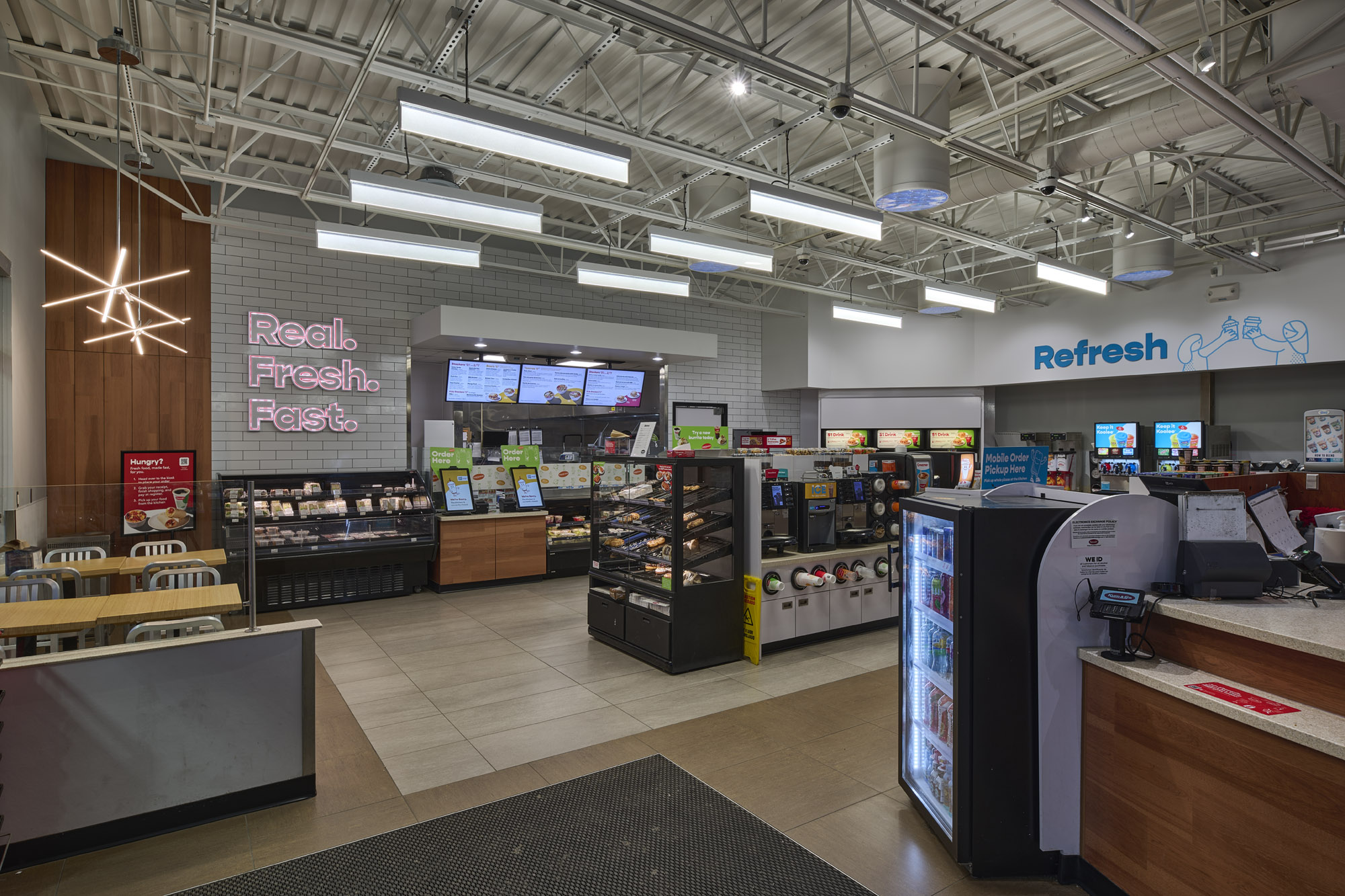 this menu to be executed, the design team worked extensively with the Kum & Go chefs and facility directors to create a new interior aesthetic that accompanies new kiosk ordering stations and a remodeled commercial kitchen.