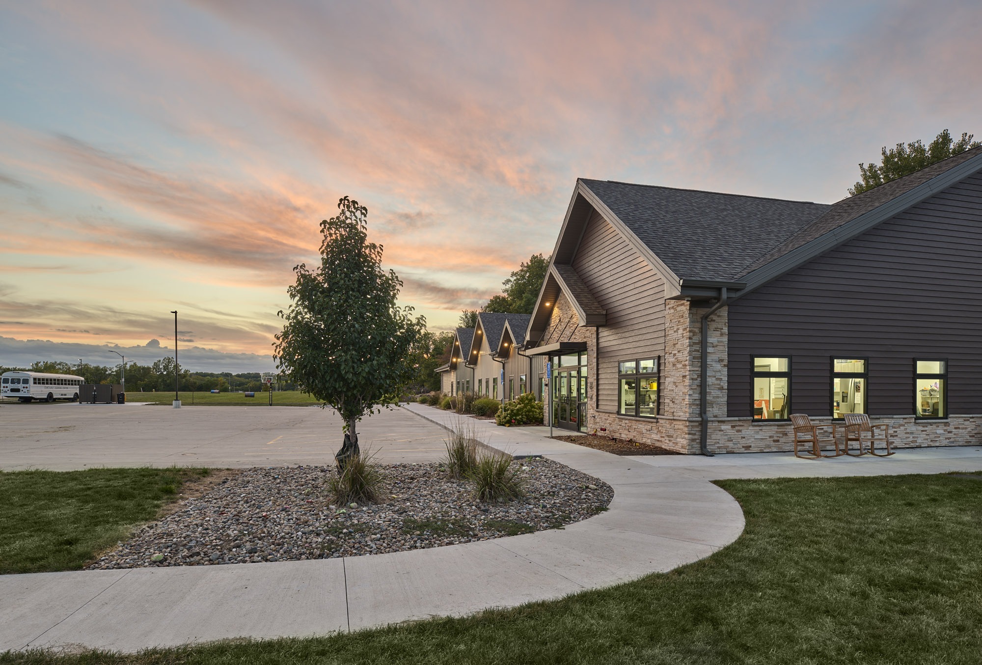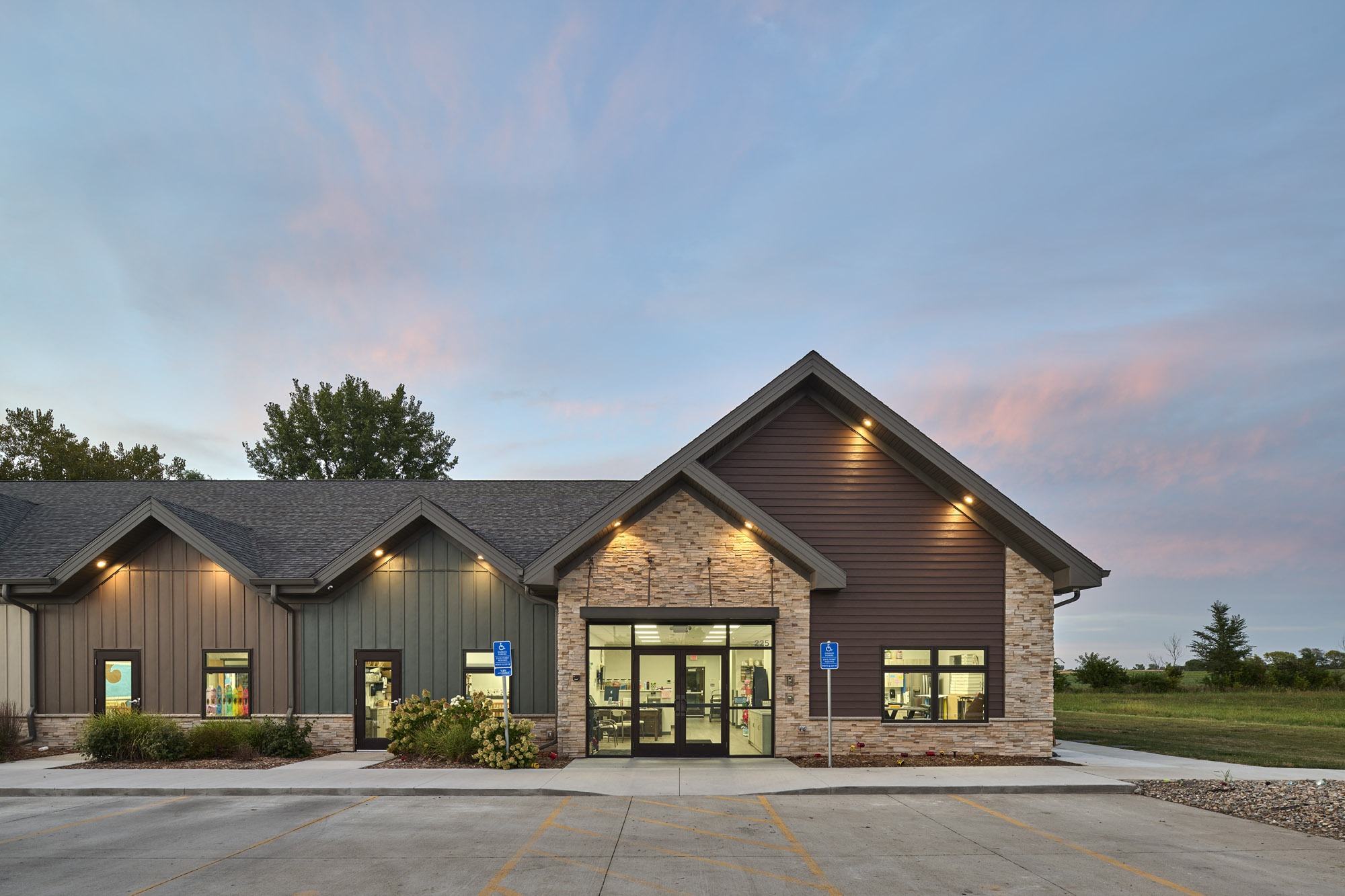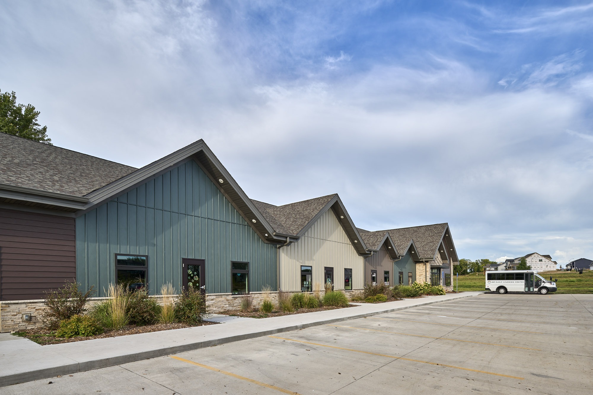 Located on the northern edge of Polk City, Iowa, this 9,000 square foot early learning center harmonizes nicely with the natural wooded setting. Providing play-based learning experiences to children six weeks through 4th grade, the 7 classrooms, 1 activity center, and full kitchen offer services to over 100 students.