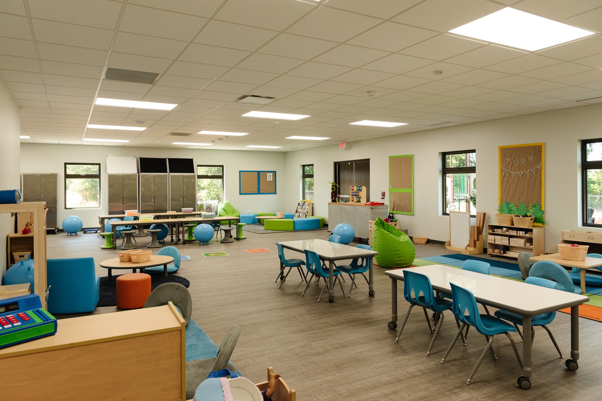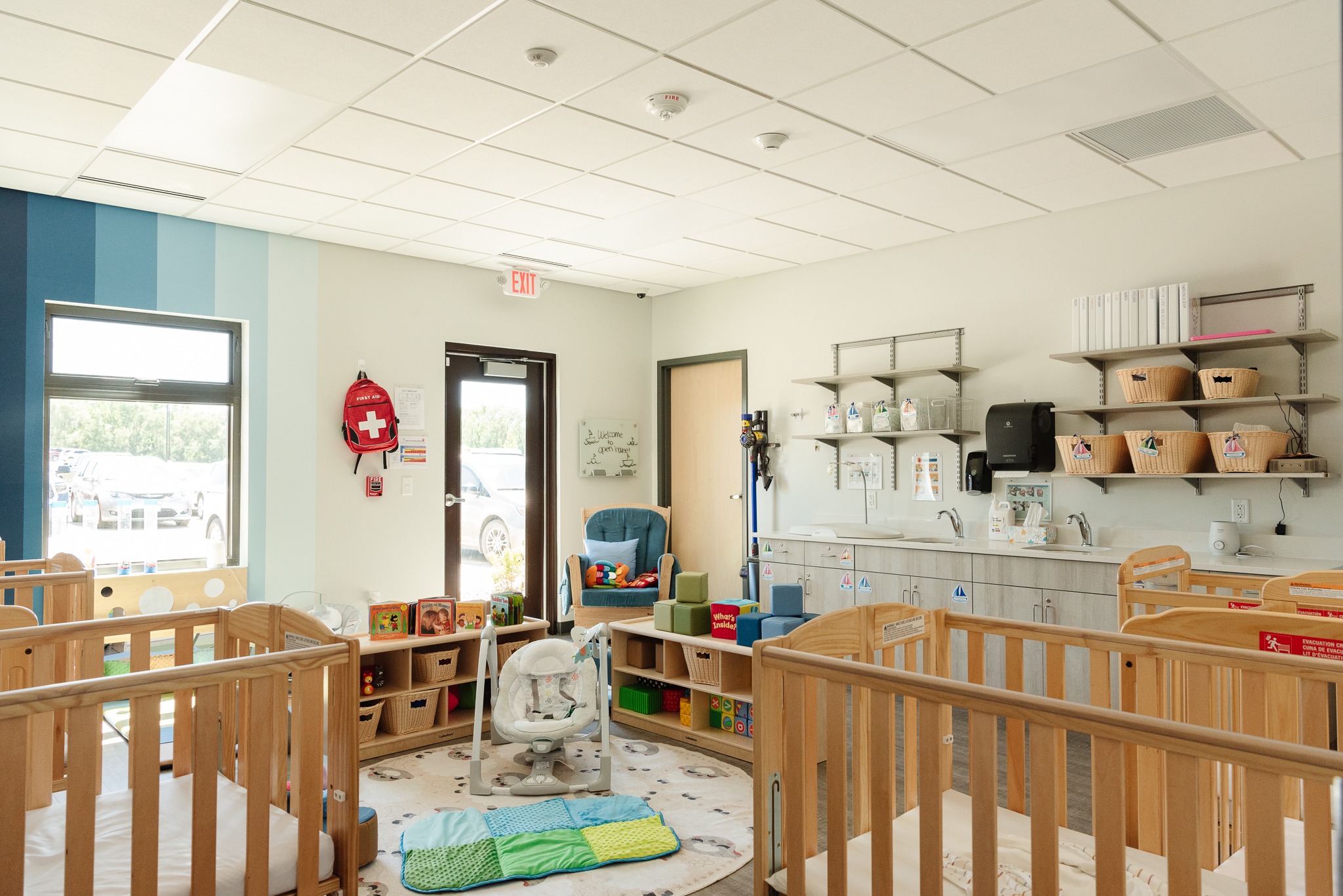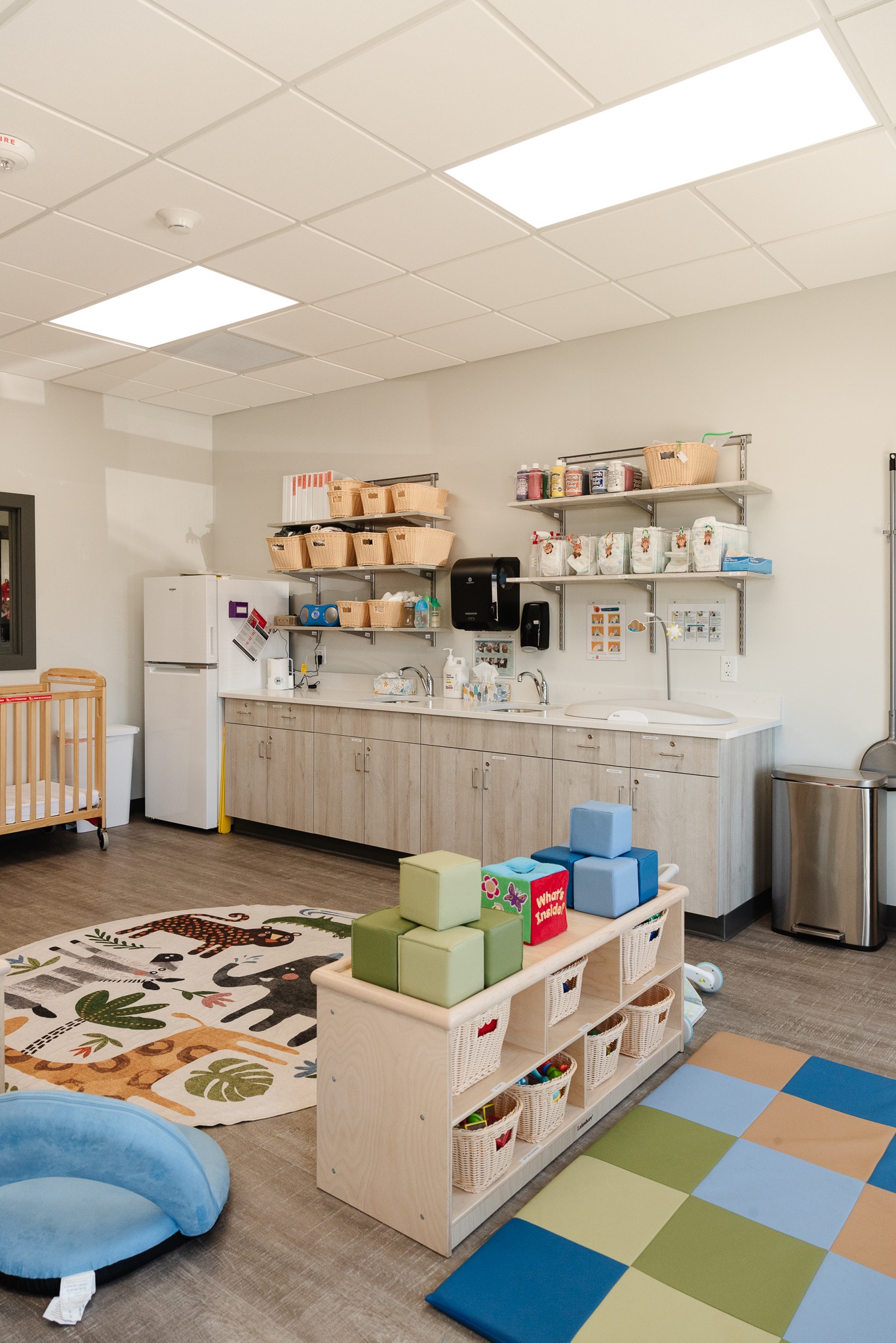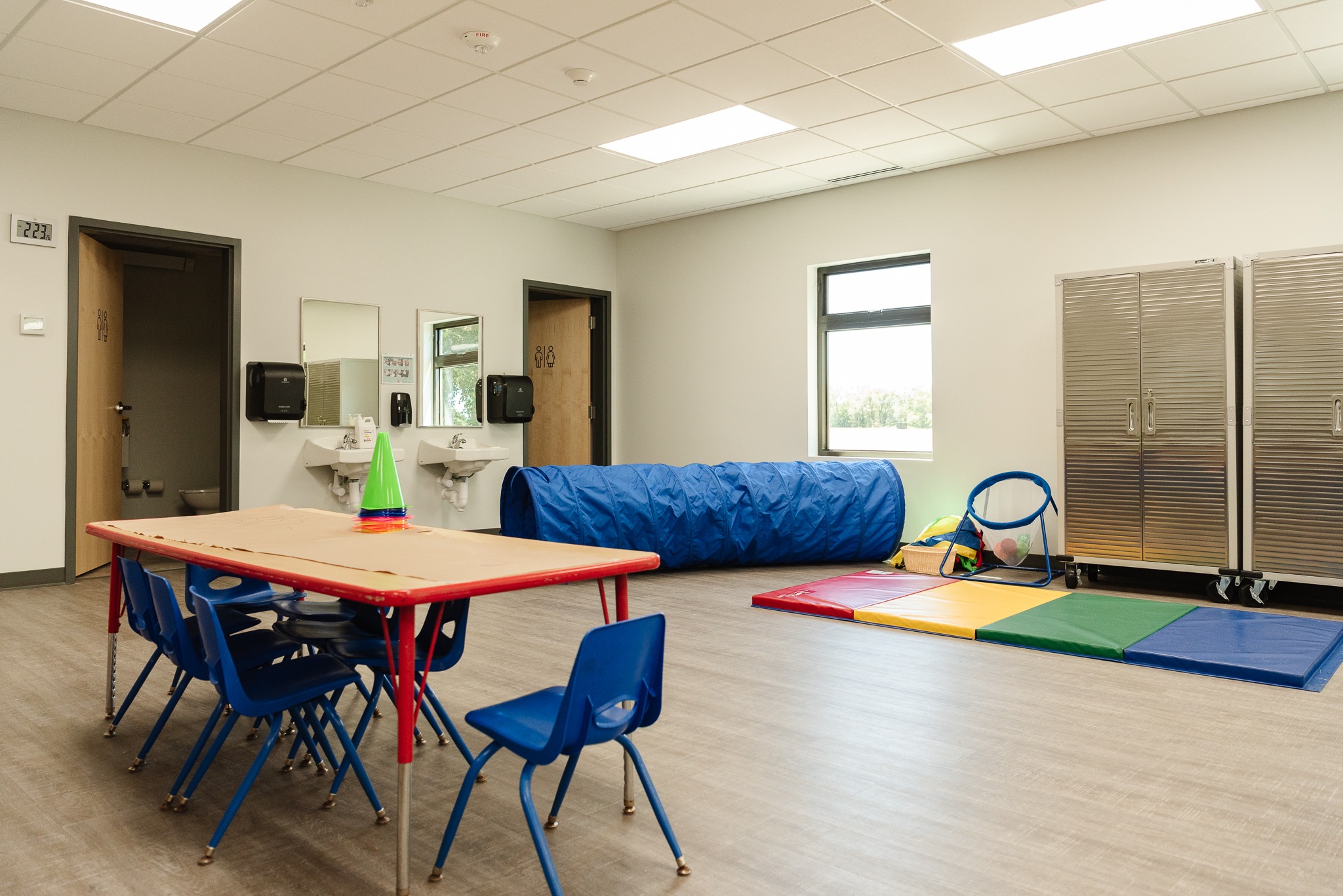 Located on the northern edge of Polk City, Iowa, this 9,000 square foot early learning center harmonizes nicely with the natural wooded setting. Providing play-based learning experiences to children six weeks through 4th grade, the 7 classrooms, 1 activity center, and full kitchen offer services to over 100 students.
