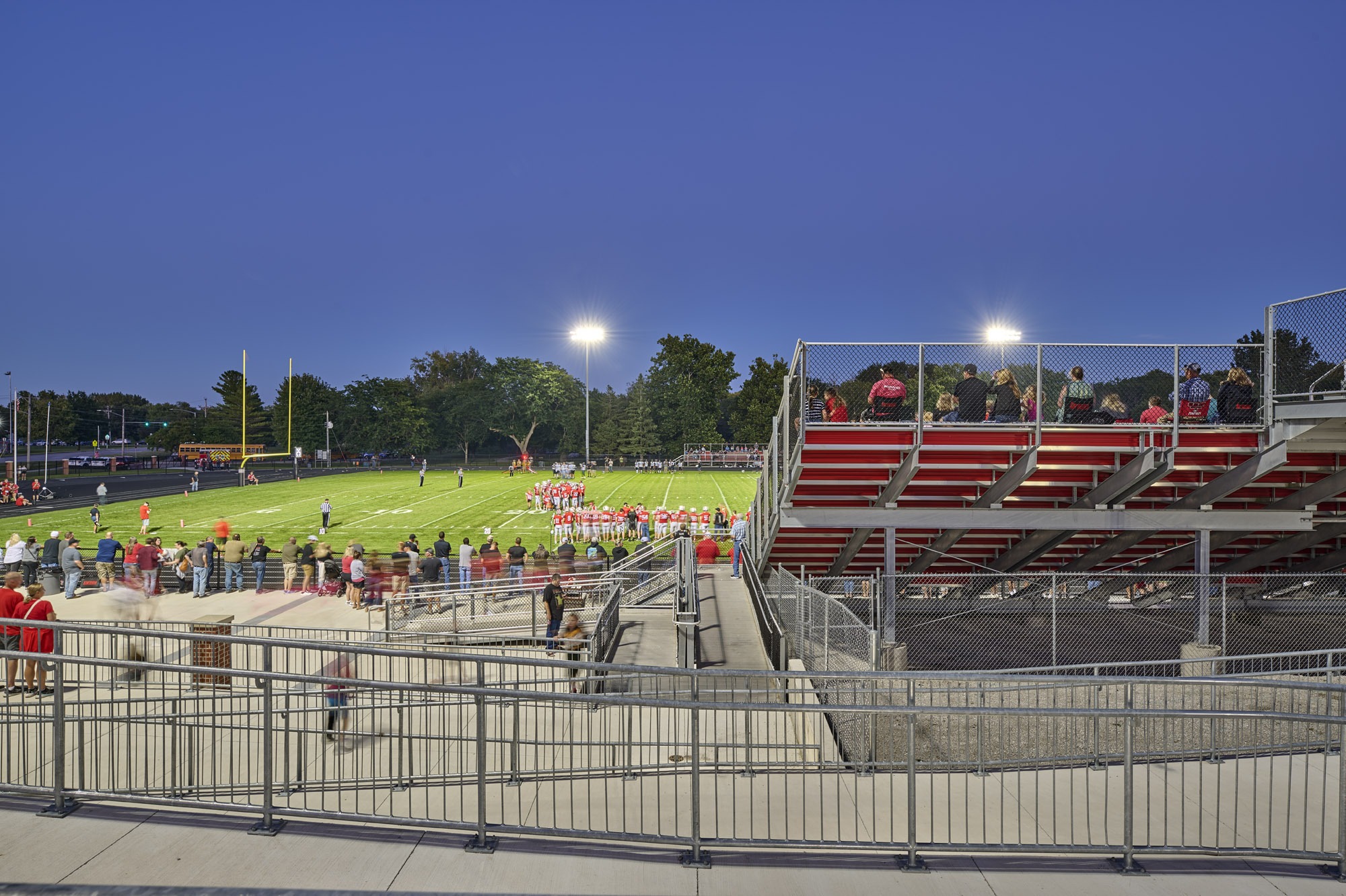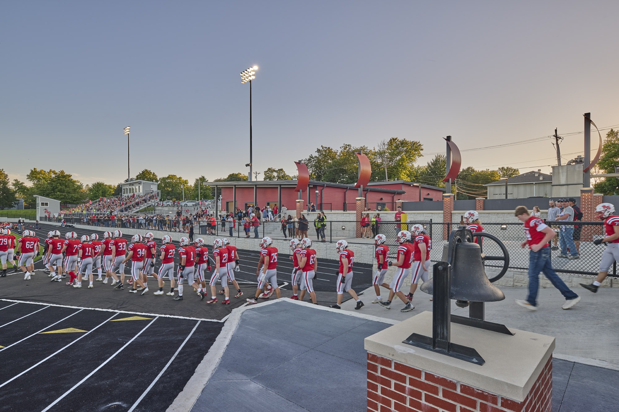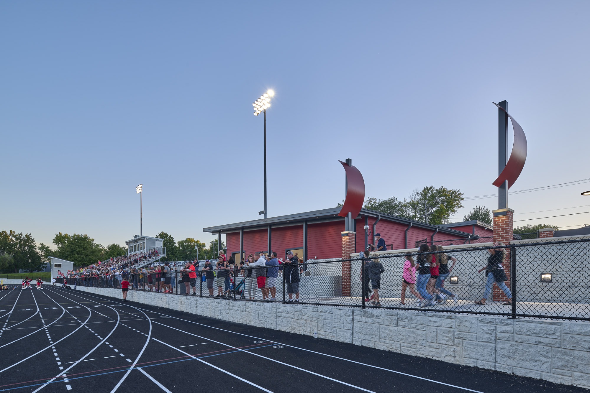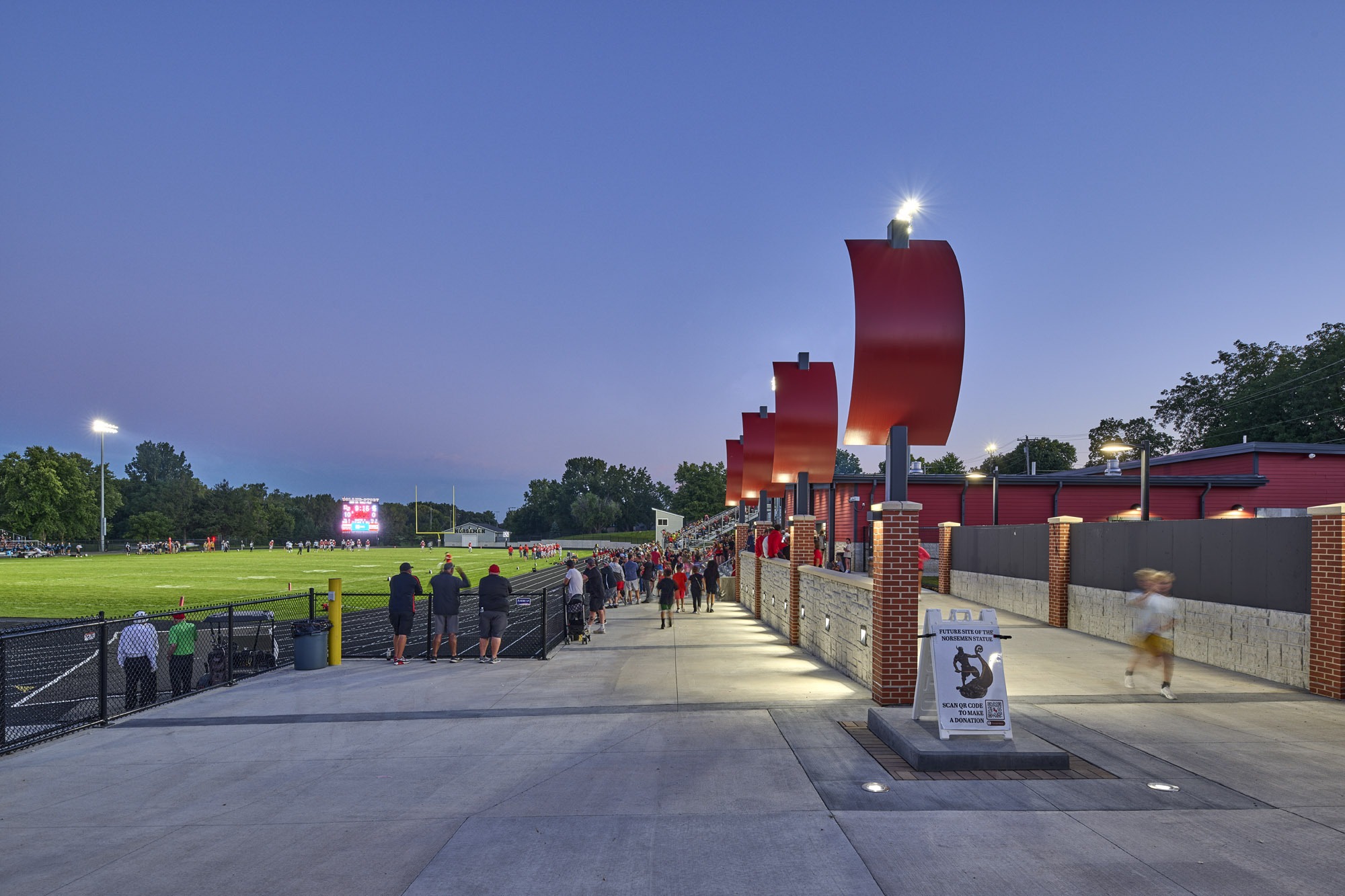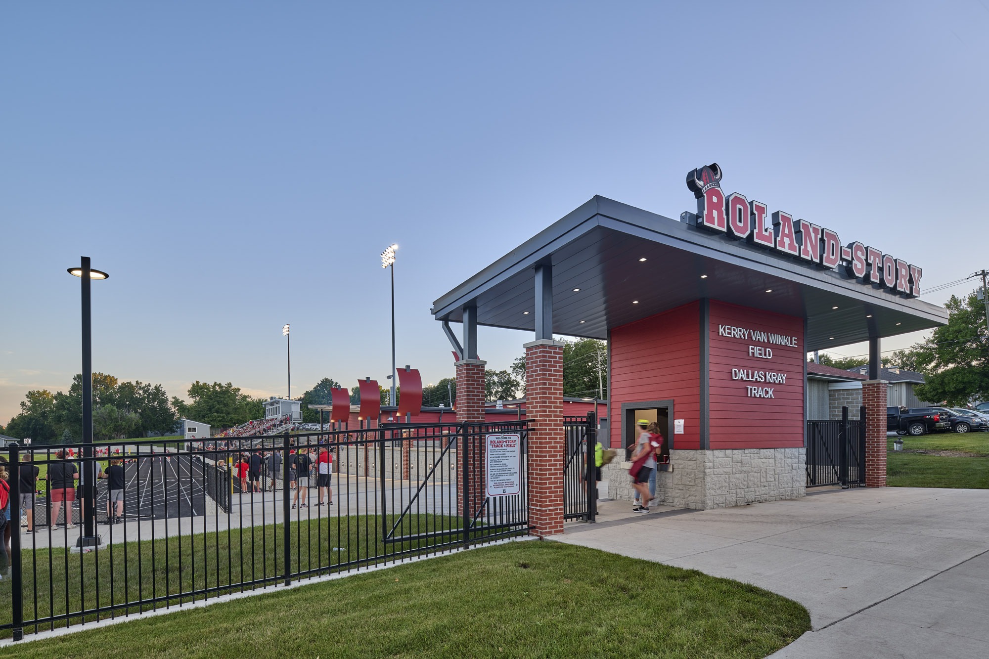 10Fold teamed up with Roland-Story Community School District to renovate their football and track complex. The school district wished to enhance the beautiful setting where so many memories have been made over the years with a rich history of athletic and musical success. With a strong “Norse” flavor, the gateway into the community was enhanced as well. The project included a new playing surface, new track, bleacher expansion, concessions, restrooms, entrance gate, viewing plaza, decorative fencing, and connecting all areas of the facility with accessible pathways. The renovated stadium will help pave the way for excellence in the school district and community for many years to come.