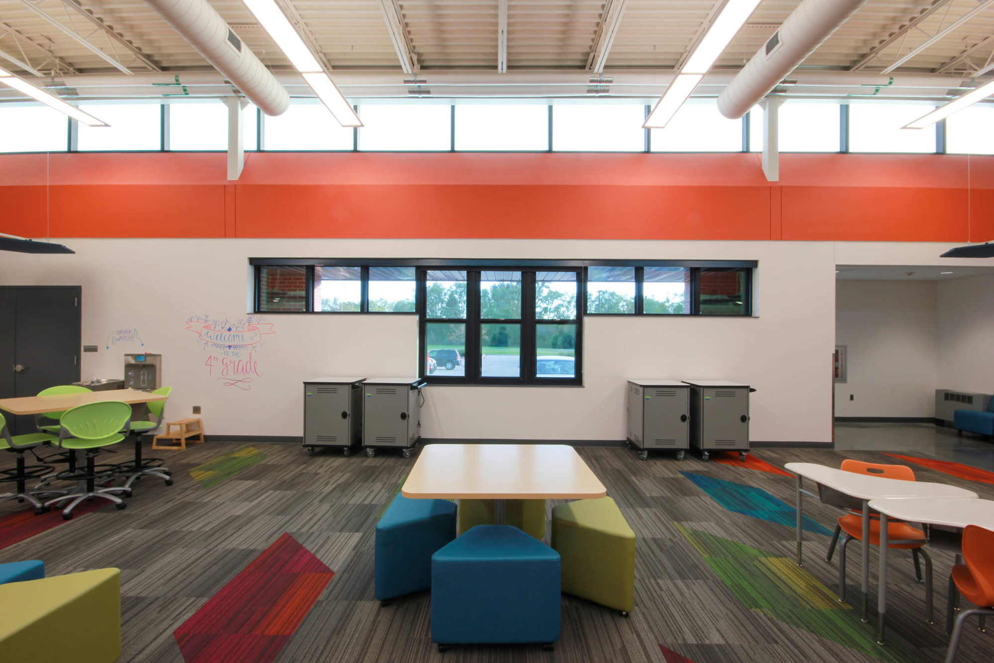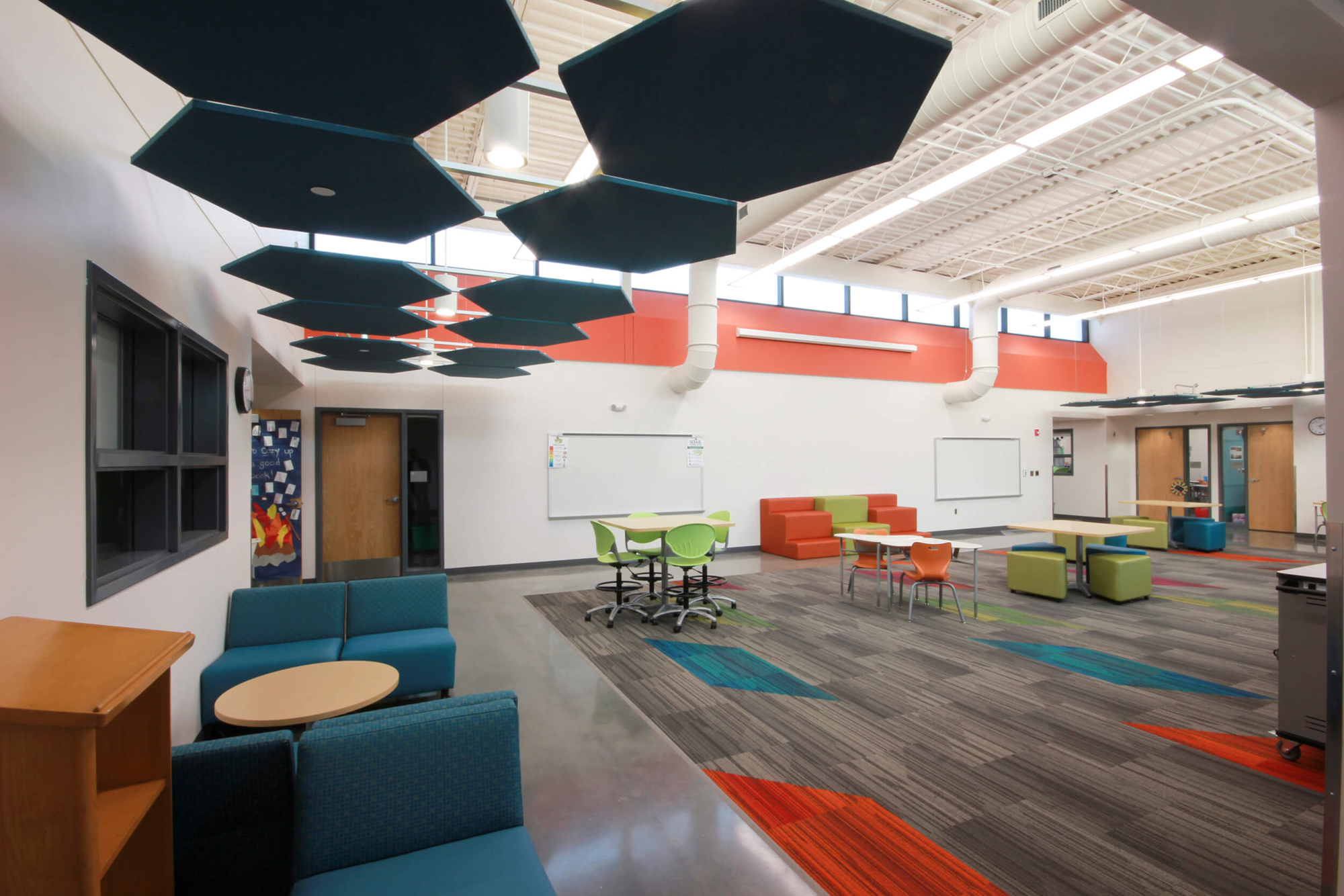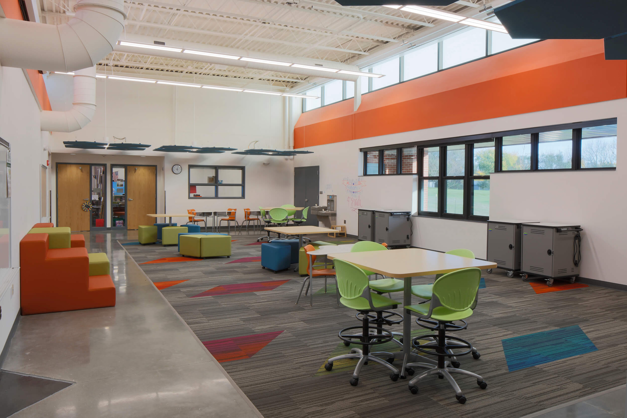 This four-classroom addition and activity space was the first step in a 10-year master plan for the Saydel Community School District to update existing facilities to accommodate 21st Century Learning and teaching methods. With a unique identity and color scheme for every classroom, the day-lit spaces are bright and exciting places for instruction. The central activity space serves as an extension of the classroom for collaborative group work or individual projects and reading. The project also includes an outdoor discovery play area for pre-kindergartners featuring a playground, tricycle track, nature station and shade structure, allowing the youngest students to learn through imaginative outdoor play and active discovery.