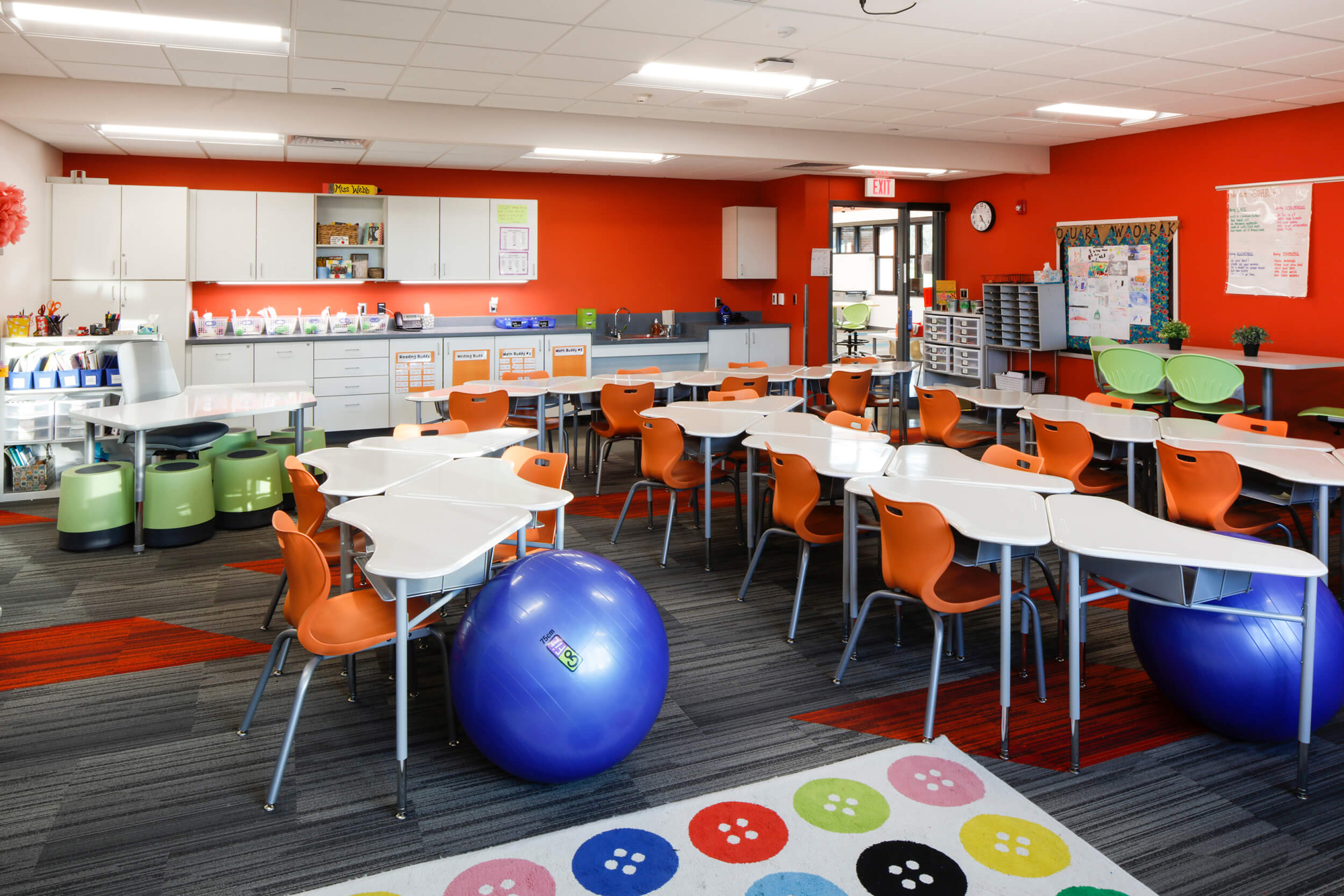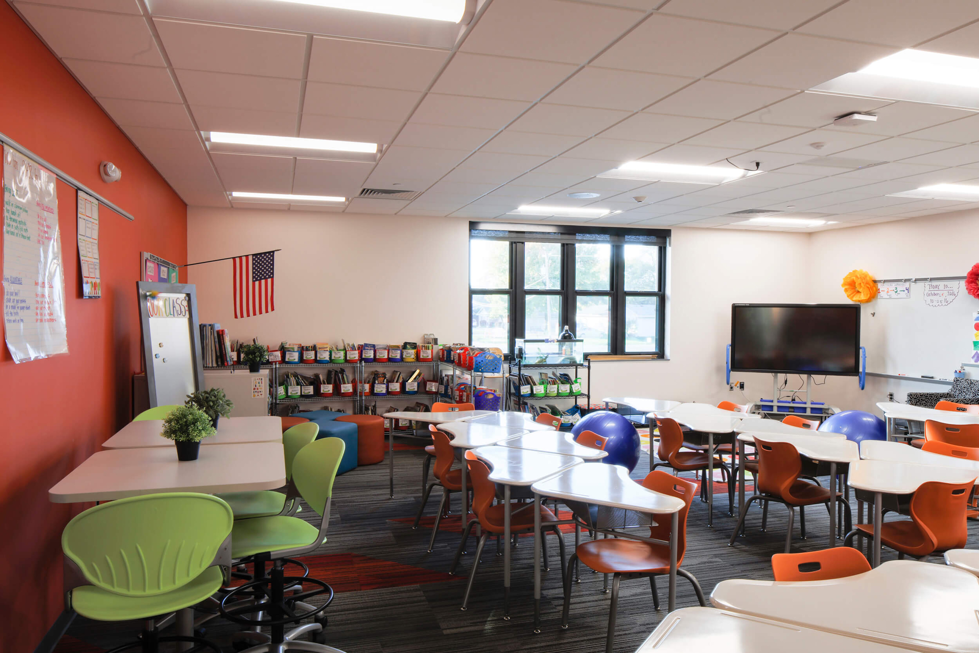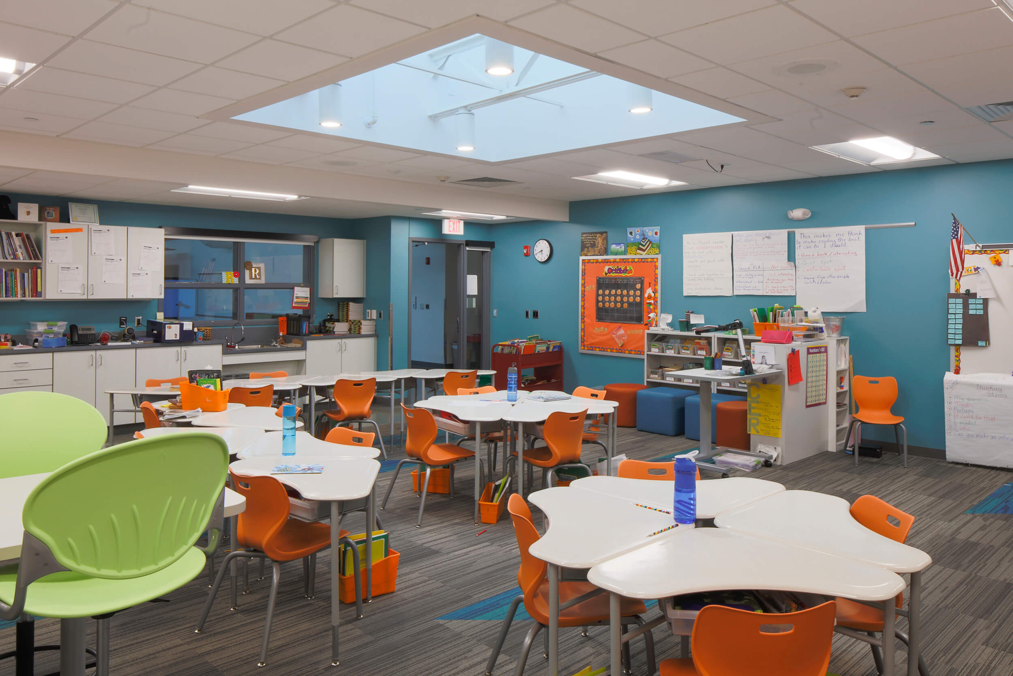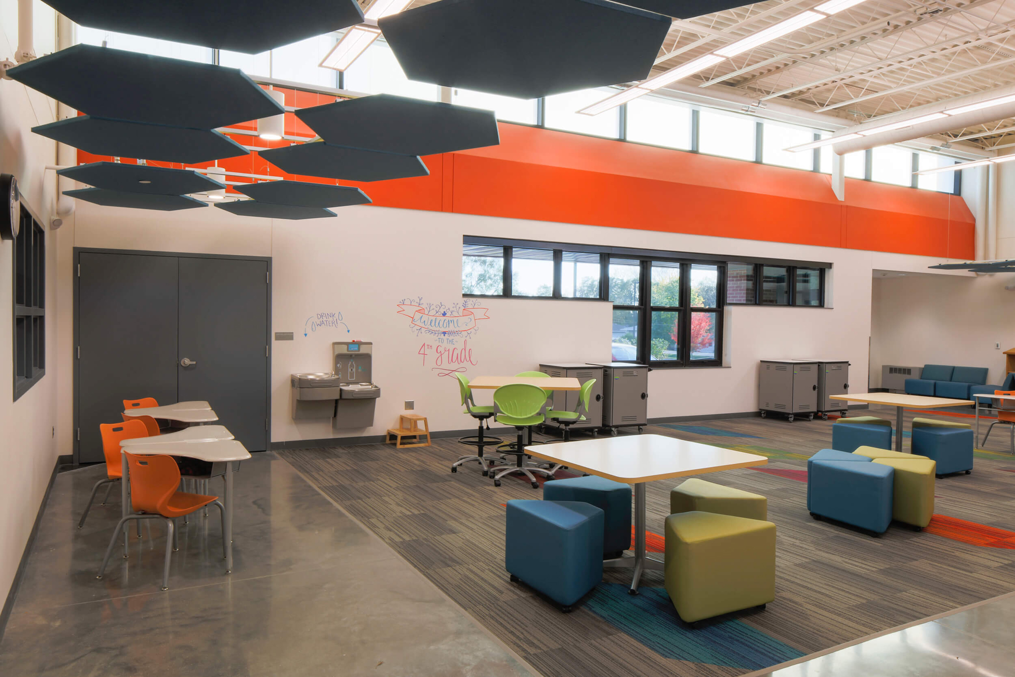 This four-classroom addition and activity space was the first step in a 10-year master plan for the Saydel Community School District to update existing facilities to accommodate 21st Century Learning and teaching methods. With a unique identity and color scheme for every classroom, the day-lit spaces are bright and exciting places for instruction. The central activity space serves as an extension of the classroom for collaborative group work or individual projects and reading. The project also includes an outdoor discovery play area for pre-kindergartners featuring a playground, tricycle track, nature station and shade structure, allowing the youngest students to learn through imaginative outdoor play and active discovery.