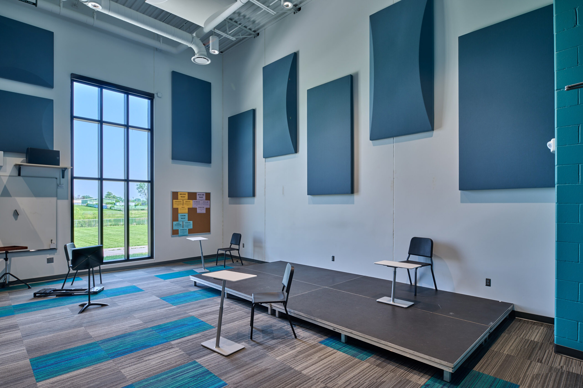 A new performing arts wing addition includes band, choir, and ensemble rooms. Renovations include a new multi-purpose room, improvements to the auditorium, expansion of the media center and cafeteria, and updated classrooms and offices.