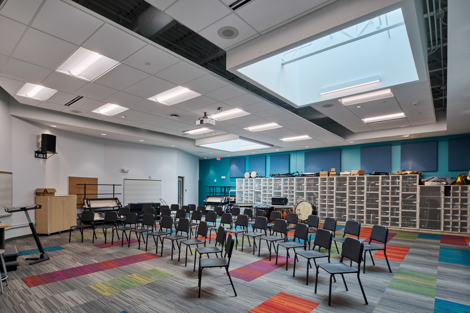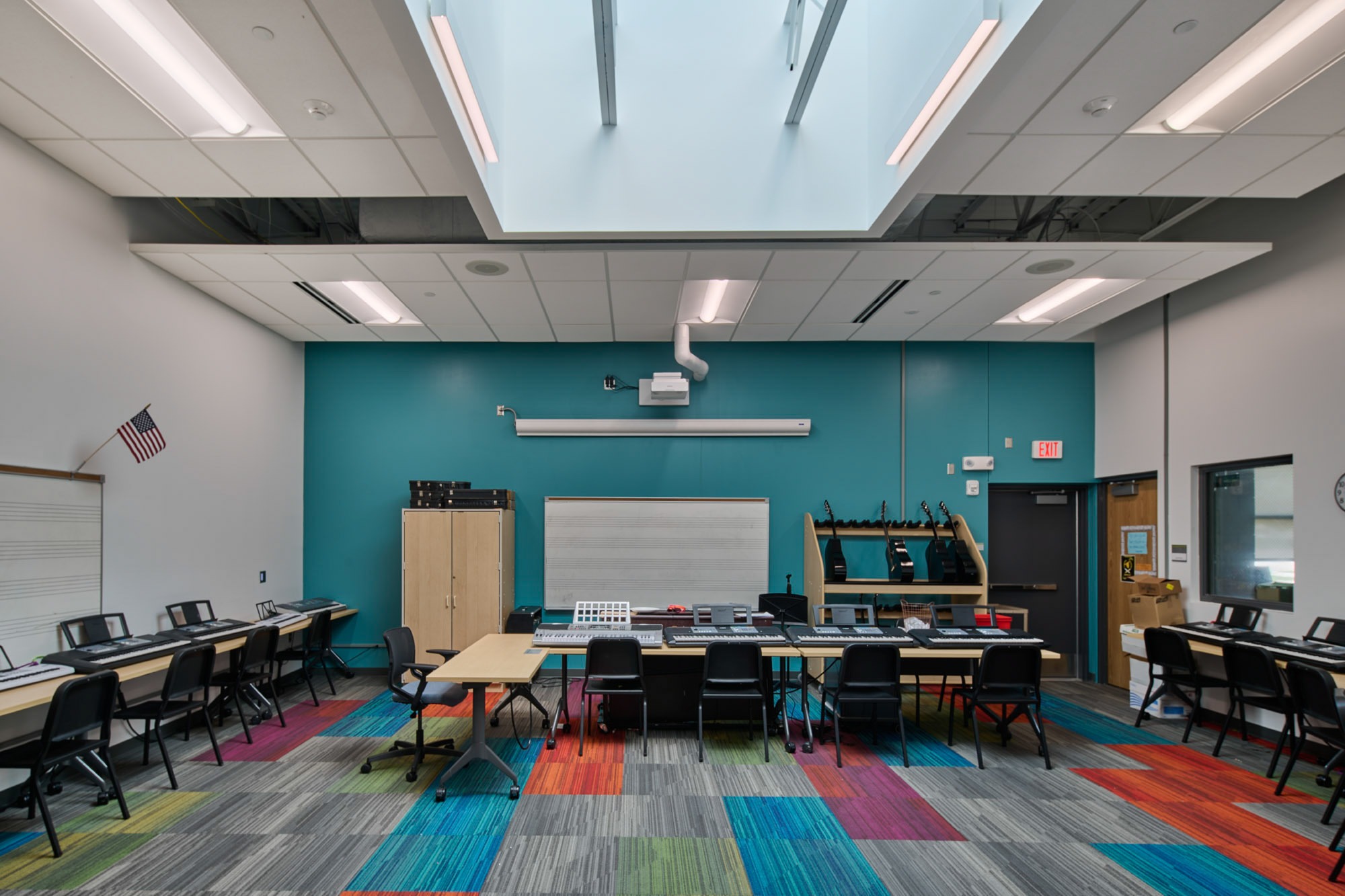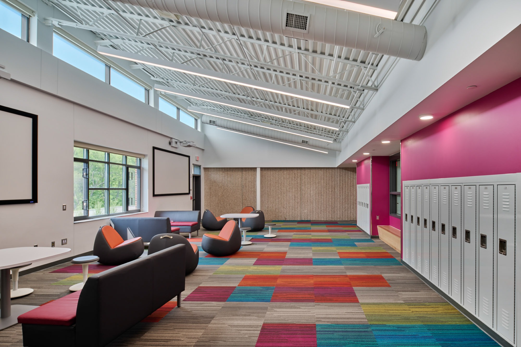 New classrooms and collaboration spaces were added as well as a secure entrance and administrative wing. The renovated areas include classrooms, music rooms, and a guidance office suite.