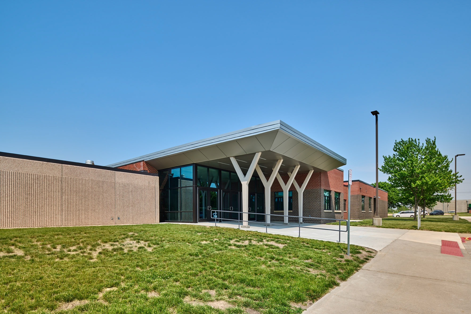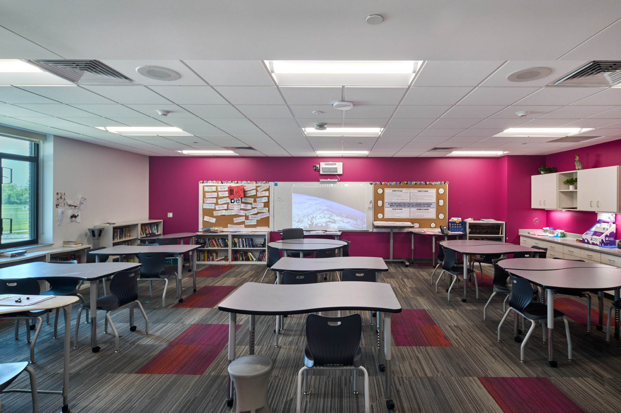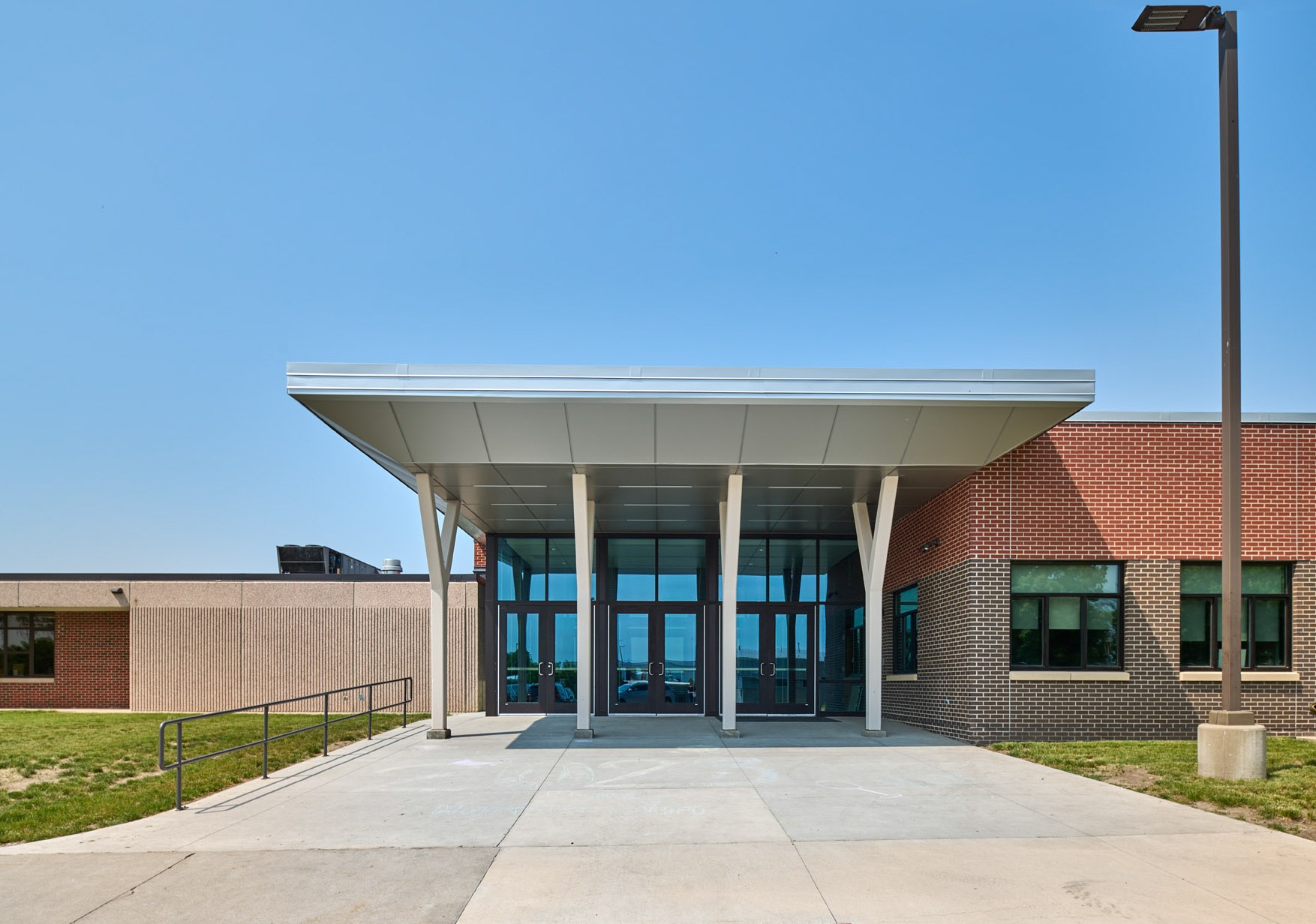 New classrooms and collaboration spaces were added as well as a secure entrance and administrative wing. The renovated areas include classrooms, music rooms, and a guidance office suite.
