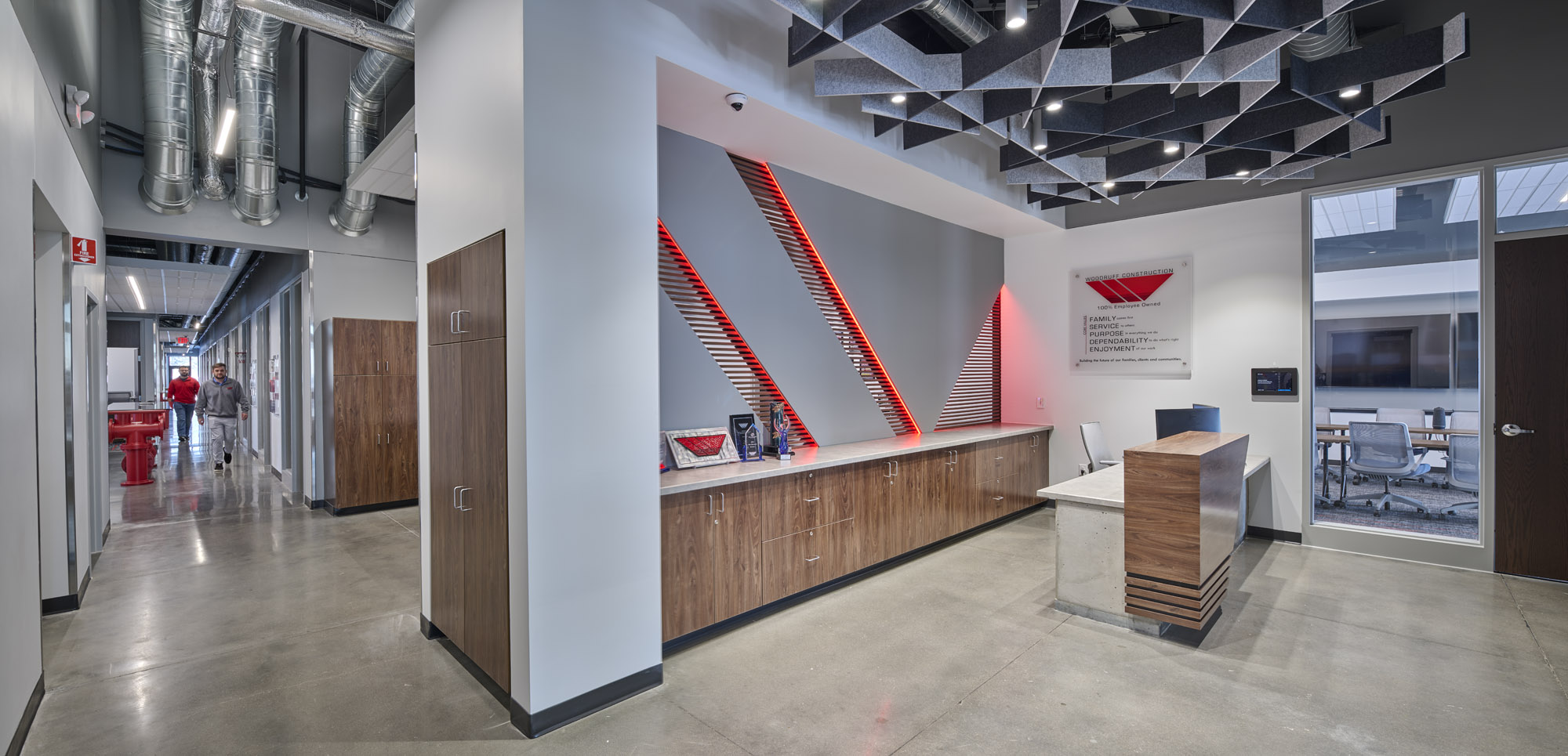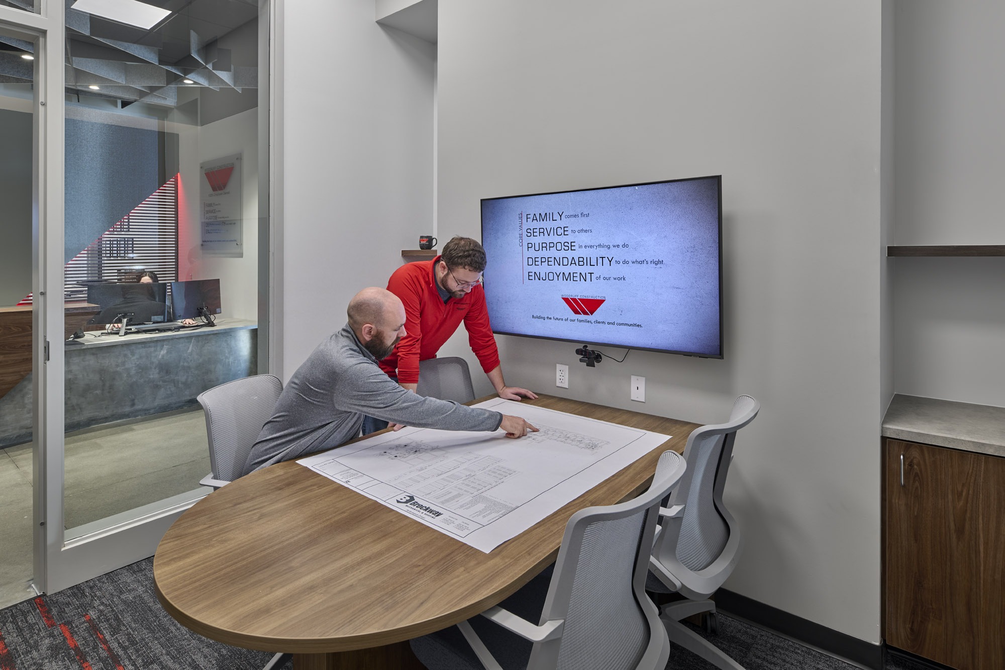 Woodruff, who specializes in self-performed carpentry, steel, and concrete construction, will build the facility. The new office design honors Woodruff’s culture and expertise by incorporating all three materials. It also supports employee well-being by emphasizing a connection to nature, with a welcoming front patio extending the break room outdoors and a window arrangement that maximizes views of the adjacent forest and lake throughout the building. The office layout encourages collaboration and spontaneous interactions among teammates, fostering an environment where ideas can be freely exchanged.